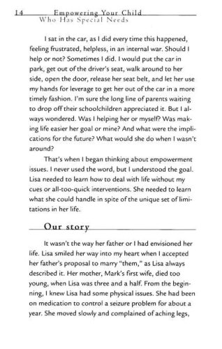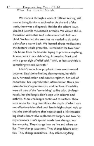 Raising a child isn't easy, and when your child has special needs, empowering your child with strength, dignity, responsibility and independence can seem daunting. Learn how to accept realities and make choices within your new boundaries, help your child grieve a life of continual losses, learn to access and negotiate the medical maze, and more.
