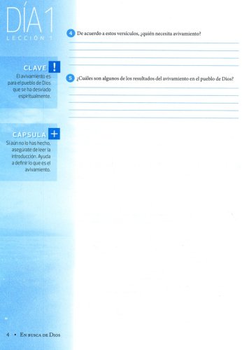 En Busca de Dios es un estudio interactivo de 12 semanas de avivamiento personal. Prepárate para experimentar la libertad y el gozo de un corazón sincero y humilde, el verdadero arrepentimiento, la sublime gracia de Dios, la santidad genuina, una conciencia tranquila, el perdón radical, la pureza sexual, y el caminar en el Espíritu. Cada semana incluye cinco días de estudio individual, preguntas de discusión e interacción grupal, testimonios de vidas cambiadas, y preguntas y ejercicios más profundos que lo hacen más personal.