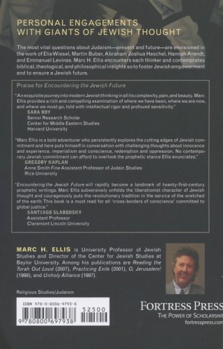 Marc Ellis maintains that the most vital questions about Judaism are prefigured in the work of Elie Wiesel, Martin Buber, Abraham Joshua Heschel, Hannah Arendt, and Emmanuel Levinas. Ellis's work is framed by encounters with each thinker's work, focusing on topics of God, the Holocaust, the prophetic legacy, philosophical and ethical standpoints, and Jewish empowerment and dissent.Two generations after the Holocaust and Israel's founding, Ellis argues that the uncertain future of Judaism requires a deeply personal and intellectual exploration of Jewish tradition and identity, in conversation with the best philosophical and theological minds of recent years.