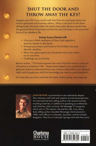 Imagine your life if you could walk free from sin and keep Satan out of your personal and business affairs. What is the key? In this bestselling book, formerly titled The Devil's Door, John Bevere reveals that the greatest form of spiritual warfare for any Christian is the powerful force of an obedient life. Enemy Access Denied will give you a fresh revelation of how God supplies a security system in the Spirit and prompt your heart and mind to find hidden sins and identify rebellion. As you're challenged to be holy, you'll discover how grace gives you the power not to be a slave to sin anymore.
