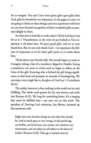 Review Enjoy: Finding the Freedom to Delight Daily in God's Good Gifts. Cancel reply