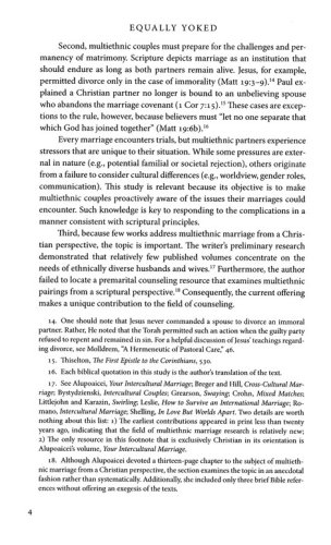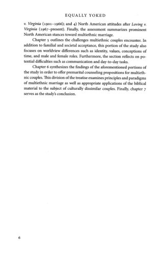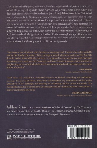 Equally Yoked examines the subject of multiethnic marriage from a biblical perspective, before considering a history of the practice in North America over the last four centuries. Additionally, this book surveys the challenges that multiethnic Christian couples frequently encounter, and offers premarital counseling propositions that will prove valuable to both counselors and couples who originate from diverse backgrounds.