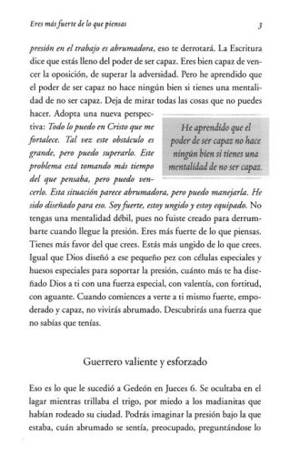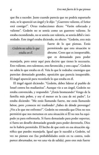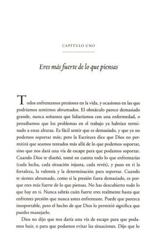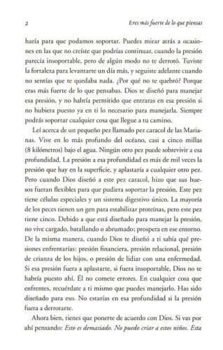 Él traerá bendiciones, aumento, favor y sanidad que ya está preparado. Va a ser más fácil de lo que pensaba y sucederá antes de lo que cree. Mientras lee Eres más fuerte de lo que piensas, siente un poder que se eleva que nunca has sentido: una fuerza, un coraje, una determinación, una resistencia. No dejará que te sientas abrumado. Puede que te sientas así a veces, pero no es así como termina tu historia. Vas a sentir una fuerza que te empuja hacia adelante, un poder para hacer lo que no podías hacer antes.