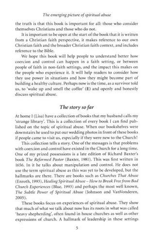 'Every time he wanted me to do something, he would quote scripture… I couldn't argue with scripture, it was like arguing with God.'â·¨The term 'spiritual abuse' is widely used across the Christian community. But what is it? â·¨Sometimes spiritual abuse involves leaders misusing their position, but ministers can also be the victims. Common factors include control through misuse of scripture, claims to divine authority, pressure to conform, and enforced accountability. Individuals may be isolated, and compelled to secrecy and silence. Drawing on a combination of extensive research, individual testimonies, and years of hands-on experience, Lisa Oakley and Justin Humphreys describe clearly the nature of spiritual abuse, and the best ways of countering it. Recovery is possible. But – how do we prevent spiritual abuse in the first place? What can leaders do to create safer places? Is there a link between theological ideas and harmful behaviors? How can leaders create opportunities for spiritual and emotional flourishing?