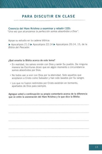 Formato de estudio bíblico, contenido y actividades creadas para que el aprendizaje ordenado.Lecturas para estudiar y discutir en grupo.Guía de lecturas diarias.Enseñanzas bíblicas para contrarrestar las enseñas erróneas de estas creencias.