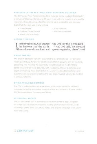 Review ESV Large Print Personal Size Bible–soft leather-look, blush rose.