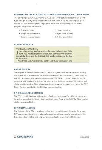 Review ESV Large Print Single Column Journaling Bible–soft leather-look, paris sky, judges 5:3.