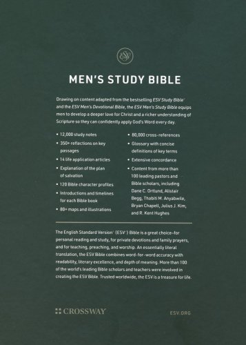 This ESV Bible includes study notes, articles, and daily devotionals written especially for men by more than 100 of the world’s leading Bible scholars and teachers, helping readers understand God’s Word more deeply and apply it to their lives.