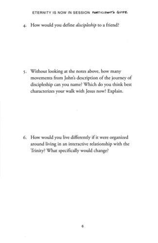Note: This is a companion piece to the Eternity Is Now in Session DVD Experience (9781496431684) and John Ortberg’s book Eternity Is Now in Session (9781496431646).