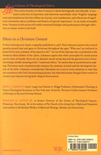 In this contemporary classic originally published in 1963, Paul Lehmann answers the central question posed time and again to Christians throughout the ages: what am I as a believer in Jesus Christ and a member of his church to do? Lehmann argues that while principles for moral action can be rules of thumb, there are no absolute moral norms beyond the general norm of love. Lehmann contends that Christians are to act in every situation in ways that are consistent with God's humanizing purposes, but what that means changes from context to context and requires strong, faith-shaped discernment.