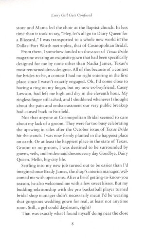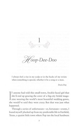 Katie Fisher and Brady James may be a match made in heaven, but that doesn't seem to guarantee them a happily ever after accompanied by angelic choirs. In fact, the sounds being heard at the bridal shop where she works are on the contentious side lately, as a bride- and groom-to-be try to mediate the growing rivalry between their basketball-obsessed families in the middle of play-off season. On top of that, Katie's parents are nagging her to get out of Dallas and come home to tiny Fairfield where her former boyfriend Casey is waiting for her, ready to rekindle their relationship. Oy vey! What's a girl to do? And will she ever be able to wear that gorgeous wedding dress she won?