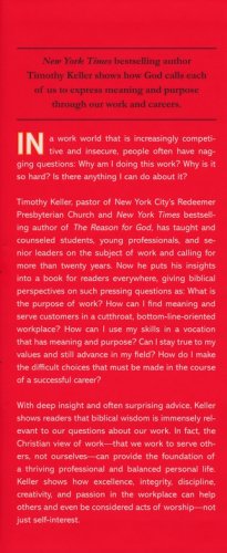 Tim Keller, pastor of New York’s Redeemer Presbyterian Church and the New York Times bestselling author of The Reason for God, has taught and counseled students, young professionals, and senior leaders on the subject of work and calling for more than twenty years. Now he pulls his insights into a thoughtful and practical book for readers everywhere.
