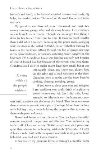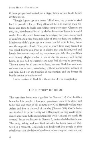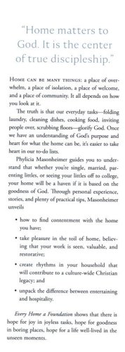 Every Home a Foundation will transform readers' view of home from a place of boredom to a place of purpose, train them to find joy in their daily tasks, and equip them to use their home to love others well by