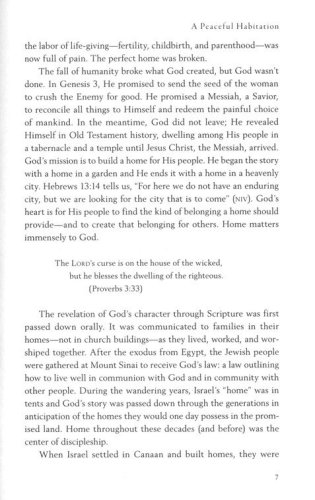 focusing on healing our view of home and creating a culture of faith;exploring the purpose in the mundane tasks of the home, including cooking, cleaning, laundry, mending, tending, and creating beauty;and learning the importance of hospitality and creating a covenant home culture.