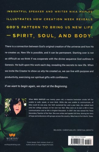 Do you desire to change or completely start over? Starting over is not as difficult as we think. The Genesis account of Creation reveals a divine sequence, showing us the secrets to new life. When we invite the Creator to make us new, we release any blame and regret we carry and embrace His foundation for re-creation, a new life. There we find exactly Who was presiding over the genesis of the earth. He can re-create us with a similar process: first bringing us revelation, then giving us benefits such as purpose and guidance, and finally teaching us to build a legacy. Through the divine sequence of Creation, we can learn simple spiritual disciplines for abiding in Christ and staying in step with the Spirit. If we want to begin again, we start at the Beginning.