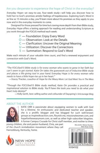 Let’s be honest. We all experience moments, even long seasons, of hopelessness. Everyday Hope—an easy-to-use, four-week study—will help you discover how to hold fast to God’s promises amidst feelings of hopelessness in as few as 15 minutes per day. Exploring the Book of Romans and other passages, you’ll learn more about His promises as they apply to you now and in the days to come. Designed for women who are pressed for time but crave depth from their Bible study, Everyday Hope offers a relevant and lasting approach for reading and understanding Scripture as you work through the FOCUS method each week: