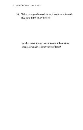 Examining The Claims Of Jesus is part of the Fisherman Bible Study Series and is designed for beginners or seekers. Based on the first five chapters of John it examines who Christ is and what He has promised every believer. Following the first five lessons, two optional studies deal with "Who Is a Christian?" (Romans) and "The Christian's Identity and Purpose (1 Peter). These studies clarify the gospel and the response Jesus' claims demand. 7 Studies for individuals or groups with leader notes and Bible text.
