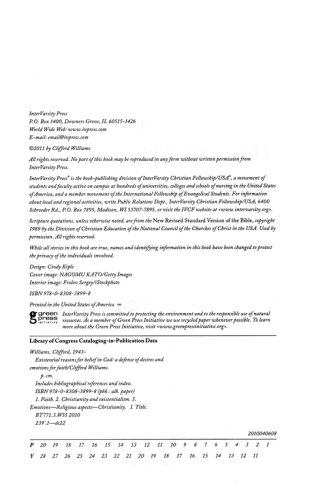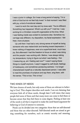Lived faith involves more than doctrines, evidences and rational coherence. In this book philosopher Clifford Williams puts forth an argument as to why certain needs, desires and emotions have a legitimate place in drawing people into faith in God. Addressing the strongest objections to these types of reasons, he shows how the personal and experiential aspects of belief play an important part in coming to faith and in remaining a believing person. These existential elements are neither irrelevant to belief nor do they undermine the legitimacy of a reasoned faith, as critics often charge–and Williams shows why. Here is a much needed complement to evidential approaches to apologetics.