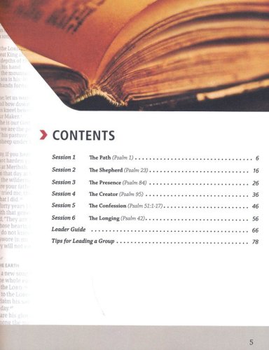 This study explores six key psalms. Psalm 1, a wisdom psalm, teaches us to embrace godly wisdom because obeying God's Word is the path of true life. The familiar Psalm 23, a song of thanksgiving, proclaims that God is always good and trustworthy. Psalm 42, a lament, ultimately lifts us up with the announcement that God's abiding hope is present even during the most discouraging times. Psalm 51 is penitential, meaning that our sin problem is defined and answered only through realization, confession, and repentance. Security in God's presence is the topic of the session on Psalm 84, which proclaims God's royalty. And session six portrays the sovereignty of God the Creator, proclaimed in Psalm 95.