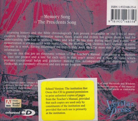 This Teacher's Manual Enhanced CD for the Veritas Press history course Explorers to 1815 includes the memory song track for the course as well as the electronic version of the Explorers to 1815 School Teacher's Manual (which includes a worksheet, at least one project, and a test for each card in that year's series) along with a "how to" video that provides help and guidance. Enhanced materials are in Adobe Acrobat format and can be accessed on the CD-ROM of most Macintosh and Windows computers. Grade 5.