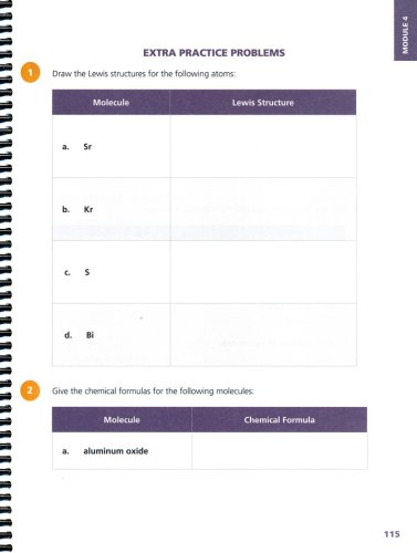 A complete daily schedule breaks down the text, notebook pages, tests, and experiments into weekly and daily blocks; following the schedule will enable students to finish the course in 34 weeks. 608 pages, softcover, spiralbound. The answers to the Study Guide questions, Summary questions, and tests are provided in the "Solutions and Tests for Exploring Creation with Chemistry" book (sold-separately). Scripture is from the NIV and NLT. Non-reproducible, consumable student workbook.