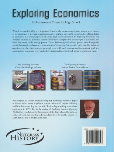 Economics is relevant everywhere, from political speeches to the daily decisions students make. Give teens the education to understand what's going on in the world around them with this important one-semester high school elective. Emphasizing faith in God and trusting His Word, students will learn how being knowledgeable about economics will help them become a better steward of the money God provides as well as a valuable, informed contributor to the economy on the personal, household, local, national, and international level. Exploring Economics reasserts the importance of the free market system, providing a clear explanation of terms and concepts.