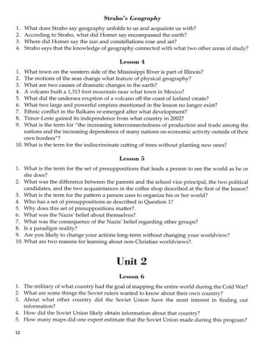 This Student Review Book is an optional part of the Notgrass Exploring World Geography course and includes lesson review questions, literature review questions, and literary analysis.