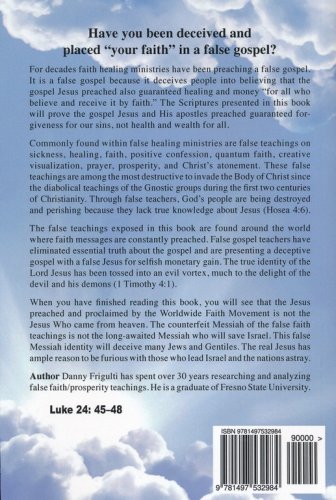 Author Danny Frigulti has spent more than 30 years reviewing "faith teachings." Exposed exposes more than 100 false teachings found in worldwide faith healing and prosperity gospel ministries. False teachings about sickness, healing, faith, positive confession, quantum faith, money, inner healing, Isaiah 53:4-5, 1 Peter 2:24, creative visualization and what the blood of Christ's atonement represents are refuted with Bible Scriptures. Also, some of these false teachings are shown to have an occult connection.