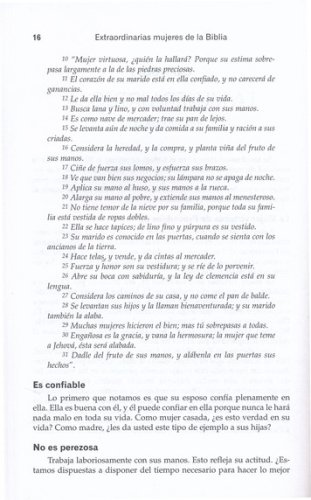 Cada capitulo destaca una mujer de la Biblia e incluye preguntas. Un formato excelente para estudio biblico individual o en grupo.