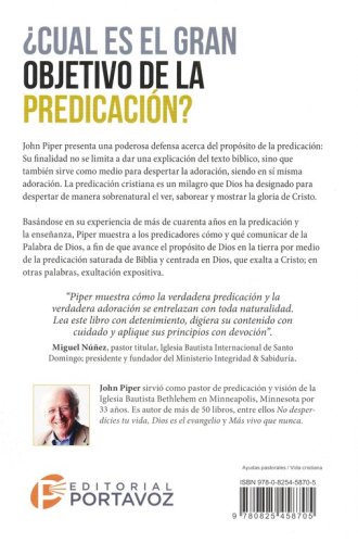 La predicación cristiana es un medio designado por Dios para transformar a sus oyentes tanto en la mente como en el corazón. Con ejemplos claros de métodos específicos, Piper muestra a los predicadores cómo y qué comunicar desde el púlpito de una manera que toma en serio la tarea de manejar la Palabra de Dios semana tras semana en el contexto de, y como, la adoración cristiana.