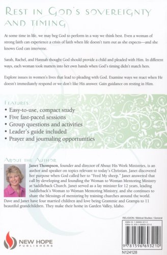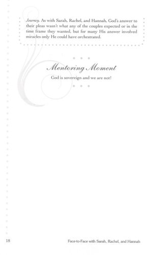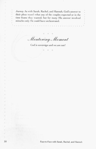 At some time in life we all beg God to perform in a way we think is best. Even a woman of strong faith can experience a crisis of faith when life doesn’t turn out as she expects and she knows God could intervene on her behalf. Sarah, Rachel, and Hannah thought God should provide a child and pleaded with Him to honor their hearts’ desire. In different ways, each woman took matters into her own hands when God’s timing didn’t match her timetable. Face-to-Face with Sarah, Rachel, and Hannah explores various issues in women’s lives that lead to pleading with God and ways they react when He doesn’t immediately respond or they don’t like His answer, as well as guiding women to learn to rest in God’s sovereignty and wait on His timing.