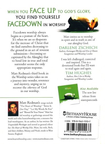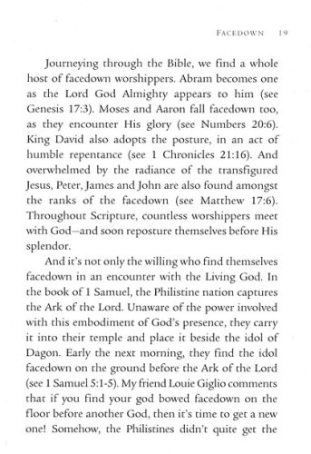 Most believers understand that worship is not a compartmentalized aspect of the Christian experience, but rather it is the motivation–the driving force–behind all that we do and are. We exist to worship God. For years we have been basking in God's love and worshipping Him with uplifted hands and hearts. Now we need to go deeper and see that God is also an awesome, mysterious being who should engender our silent, even dumbstruck, reverence for His holiness, His "otherness." Until we are undone by the knowledge of who God is in all His glory, we will only touch the edges of true worship. Matt Redman says, "When we face up to the glory of God, we find ourselves face down in worship." This book shows the biblical record of those who found themselves prostrate before God.