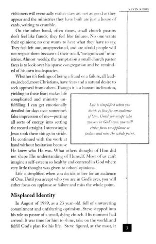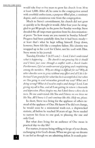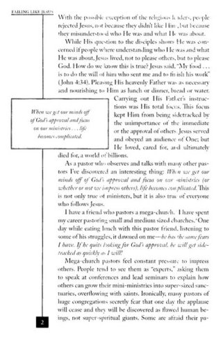 Failing Like Jesus takes a closer look at the ministry of Jesus on earth where he faced many challenges, people who misunderstood Him, and the perception of a failed ministry. Jesus stood up to the challenges and understood His identity was wrapped up in His relationship with His Father. Such knowledge enabled Jesus to perform for an audience of One. By learning to please the Father as Jesus did, your life and ministry will no longer depend on the approval or disapproval of others.