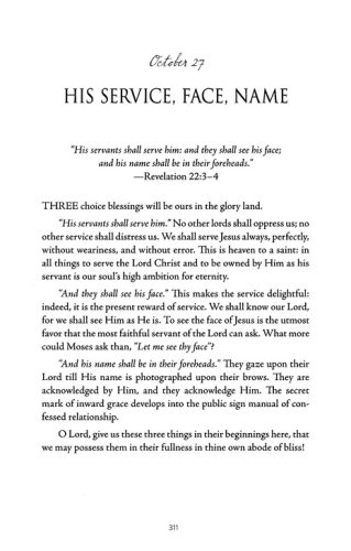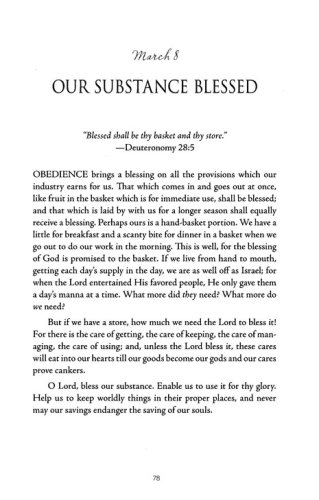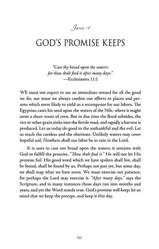 Charles H. Spurgeon supplies daily deposits of God's promises into the reader's personal bank of faith. He urges the reader to view each Bible promise as a check written by God, which can be cashed by personally endorsing it and receiving the gift it represents!