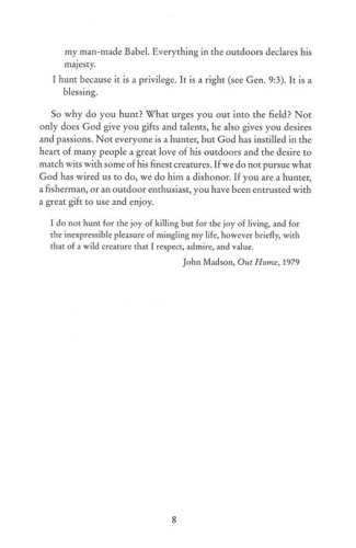This unique devotional, geared primarily toward men, uses illustrations and principles from hunting, shooting, and fishing sports, giving sportsmen new insights into truths from Scripture and challenging them in their walk with God. Each devotion leaves the outdoorsman with a specific life application on topics such as: