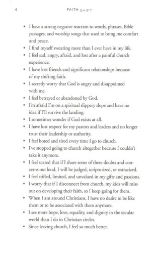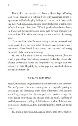 Filled with honest stories and practical insights, Faith Shift gives language to what many experience as their faith evolves. With an inviting blend of vulnerability and hope, it addresses the losses that come with spiritual shifts and offers tangible practices for rebuilding a free and authentic faith after it unravels. What feels like an ending can become a new beginning.