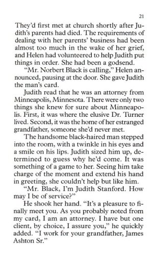 When dedicated philanthropist Judith Stanford receives a summons from her estranged grandfather ordering her to come to Minneapolis to prove herself worthy of his inheritance, she is hesitant but can't ignore the potential of her grandfather's fortune to benefit her causes. And the only man to interest her since her husband's death lives in Minneapolis, leaving her hoping their paths will cross.