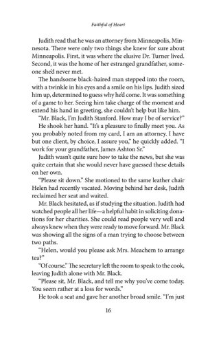 When dedicated philanthropist Judith Stanford receives a summons from her estranged grandfather ordering her to come to Minneapolis to prove herself worthy of his inheritance, she is hesitant but can't ignore the potential of her grandfather's fortune to benefit her causes. And the only man to interest her since her husband's death lives in Minneapolis, leaving her hoping their paths will cross.