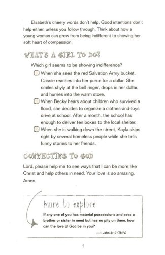 What's a Girl to Do? You want to do the right thing, of course, but what is the right thing? The Bible doesn’t say anything about whether or not you should quit the school band or how to tell a friend her skirt is a little too short, does it? Inside you’ll find ninety real-life devotionals to help you grow in faith every day, because the Bible does have all the answers, even for the girl who’s all that—and more!