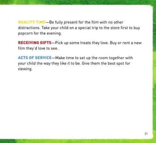 What does it look like to love my child through Acts of Service? How can I think of a new way to have Quality Time with my child? This book is an invaluable resource of family activities incorporating each of the five love languages. There are ideas for wet days, sunny days, and holidays . . . ways to relax or to be active . . . ways to be creative or take in new experiences together. Family Time brings ease and enjoyment to your days and helps activate all five love languages in your household.