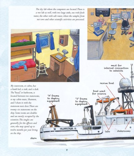 In extremely deep waters (two miles deep), the vast sea appears empty. But as naturalist and artist Sophie Webb shows us, it is full of fascinating—yet difficult to study—life. Together with her shipmates, Sophie counts and collects samples of life in the deep ocean, from seabirds to dolphins, from winged fish to whales. Only their long-term field work can really help scientists determine the health of these remarkable creatures who need the clean deep ocean to survive.