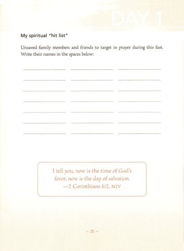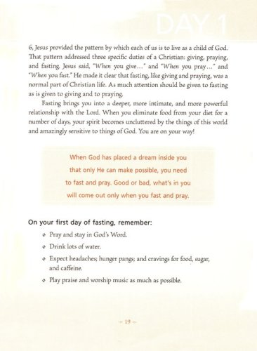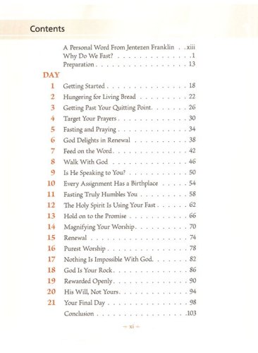 "New York Times"-bestselling author Franklin offers the necessary keys to experiencing powerful transformation in this 21-day fasting journal. Each day provides a specific focus for prayers and fasting, and includes specific reminders of what to expect both physically and spiritually during a fast.