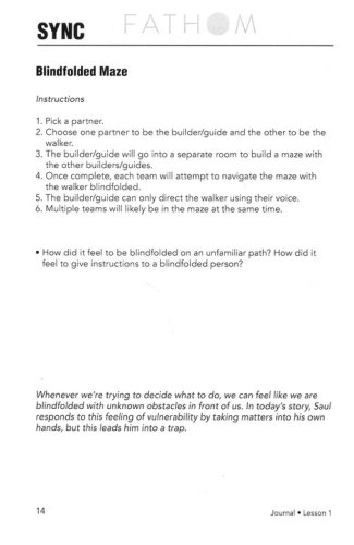 Fathom is a Bible study for teens that covers the Old and New Testaments in 18 4-session studies. The lessons are a blend of narrative and traditional theological approaches to understanding the Bible story. Each lesson will focus on one passage that will launch into the larger context of God's story being studied,and how that story is meant to be theirs. Fathom is suitable for groups with middle schoolers, high schoolers, and any combination of the two. But unlike many other resources, it acknowledges the differences between older and younger youth and the way they learn. It provides activities specific to each age group, as well as activities for mixed groups in which older youth have leadership opportunities. Fathom gives leaders the option to let youth take ownership of their learning through teaching and leading alongside adults. Fathom creates space and tension for teens to wrestle with how to interpret and experience the Bible.