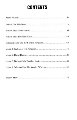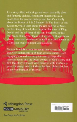 In The Birth of the Kingdom, your students will explore the history of God’s people as they begin to settle in the land God promised them. Through these four lessons, you and your teens will learn about the power of God in the lives of all people from young children to newly-crowned kings. This study will cover the books of 1 & 2 Samuel and 1 Chronicles. A Deep Dive into the Story of God Fathom is a Bible study for teens that covers the Old and New Testaments in 18 4-session studies. The lessons are a blend of narrative and traditional theological approaches to understanding the Bible story. Each lesson will focus on one passage that will launch into the larger context of God's story being studied,and how that story is meant to be theirs. Fathom is suitable for groups with middle schoolers, high schoolers, and any combination of the two. But unlike many other resources, it acknowledges the differences between older and younger youth and the way they learn. It provides activities specific to each age group, as well as activities for mixed groups in which older youth have leadership opportunities. Fathom gives leaders the option to let youth take ownership of their learning through teaching and leading alongside adults. Fathom creates space and tension for teens to wrestle with how to interpret and experience the Bible.