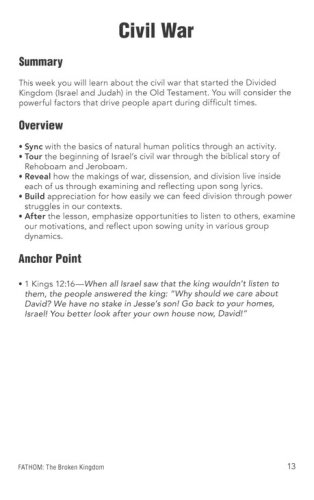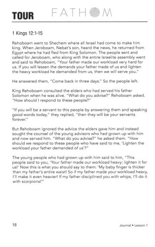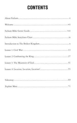 In The Broken Kingdom, you and your teens will experience the story of Israel’s fall and eventual exile. Throughout these four lessons, your group will learn about the consequences of failing to trust in God as well as the redemption offered by God in even the worst of circumstances. This study covers the history of Israel and Judah in 1 & 2 Kings and the prophets. A Deep Dive into the Story of God Fathom is a Bible study for teens that covers the Old and New Testaments in 18 4-session studies. The lessons are a blend of narrative and traditional theological approaches to understanding the Bible story. Each lesson will focus on one passage that will launch into the larger context of God's story being studied,and how that story is meant to be theirs. Fathom is suitable for groups with middle schoolers, high schoolers, and any combination of the two. But unlike many other resources, it acknowledges the differences between older and younger youth and the way they learn. It provides activities specific to each age group, as well as activities for mixed groups in which older youth have leadership opportunities. Fathom gives leaders the option to let youth take ownership of their learning through teaching and leading alongside adults. Fathom creates space and tension for teens to wrestle with how to interpret and experience the Bible.