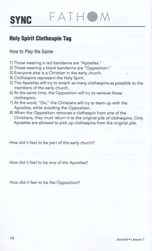 In this session students will explore what it meant to be followers in the early church. Using both scripture and historical knowledge of how churches would have functioned they will discover similarities and differences between the early church and churches today. (Luke, Acts) A Deep Dive into the Story of God Fathom is a Bible study for teens that covers the Old and New Testaments in 18 4-session studies. The lessons are a blend of narrative and traditional theological approaches to understanding the Bible story. Each lesson will focus on one passage that will launch into the larger context of God's story being studied,and how that story is meant to be theirs. Fathom is suitable for groups with middle schoolers, high schoolers, and any combination of the two. But unlike many other resources, it acknowledges the differences between older and younger youth and the way they learn. It provides activities specific to each age group, as well as activities for mixed groups in which older youth have leadership opportunities. Fathom gives leaders the option to let youth take ownership of their learning through teaching and leading alongside adults. Fathom creates space and tension for teens to wrestle with how to interpret and experience the Bible.