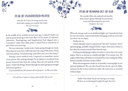 This lovely devotional guide features180 readings and prayers designed to help alleviate your fears as you learn to place your trust in the Almighty God, who gives you courage. Inspired by this promise from God's Word: "Be strong. Take courage. . .because God, your God, is striding ahead of you. He’s right there with you. He won’t let you down; he won’t leave you" (Deuteronomy 31:6 MSG), Fear Less, Pray More reinforces the truth that with God, you can live courageously every single day—whether you fear the unknown, aging, rejection, losing a loved one, being alone, or something more.