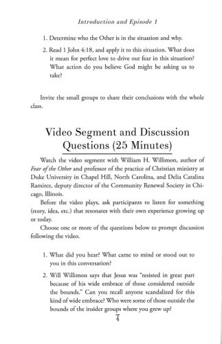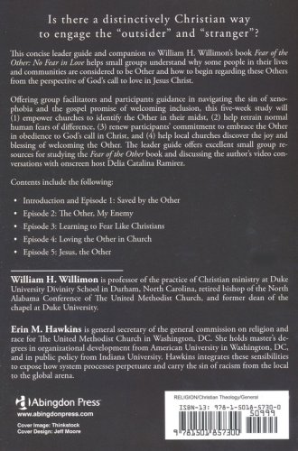 This five-week DVD/video based small group study companion to the book, Fear of the Other: No Fear in Love invites readers to consider the Gospel command to love (and not merely tolerate) those considered to be "Other" or outside mainstream Christian culture. This Leader Guide and the DVD (9781501857249), sold seperately, are required for the small group study. Rooted in the faith of Israel and the Christian story and vision, Willimon – in an onscreen conversation with Delia Catalina Ramirez, brings a non-technical, Wesleyan perspective to bear on what may be the hardest thing for people of faith to do: keeping and loving the Other as Other. Emphasizing the biblical mandate to receive Others in their particularity and difference as gifts and mysteries bearing the grace of God, this study also offers a strong critique of the privileged who all too often rush to language of reconciliation and evade the huge inequalities surrounding conversations and practices dealing with xenophobia and injustice. Rooted in the New Testament understanding of Gentile outsiders grafted into the covenant community, this study invites readers to an on-the ground faith that hearkens to a soliciting and revealing God – the God who comes to us again and again through so-called outsiders, strangers, immigrants, and those without status. The 5 video conversations between Will Willimon and Delia Ramirez focus on each of the five chapters of Fear of the Other: Session 1: Saved by the Other Session 2: The Other, My Enemy Session 3: Learning to Fear Like Christians Session 4: Loving the Other in Church Session 5: Jesus, the Other