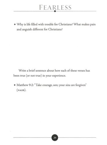Fearless draws from Jesus’ encounters with people in frightening situations giving evidence that we can trust God through these scary times. In six sessions, Max takes a close look at our greatest fears and offers scripturally based reassurance and guidance through even the toughest moments of our lives. This discussion guide can be used for personal journaling or as a prompt for open-hearted discussions with your small group. Let Max Lucado show you how to find a sense of peace and security in today's troubled world.