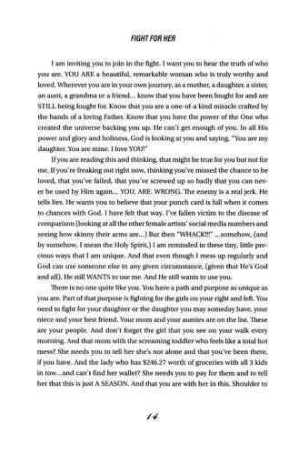 Fight for Her is a moving challenge to women of all ages to fight for each other… even if that means fighting WITH each other. With love. With hope. And with bucket loads of grace. Drawn from the generational lessons of both being and having a daughter, in each chapter Plumb explores fundamental questions and issues every girl and woman face with both depth and levity. Her sense of humor and down to earth life lessons draw us to hold on to Jesus and each other with full hearts, wanting the best for each other. With thoughtful questions in every chapter, FIGHT FOR HER offers an empowering, encouraging and enriching read both as a standalone book and small group discussion.
